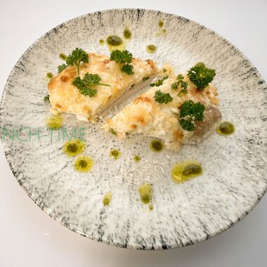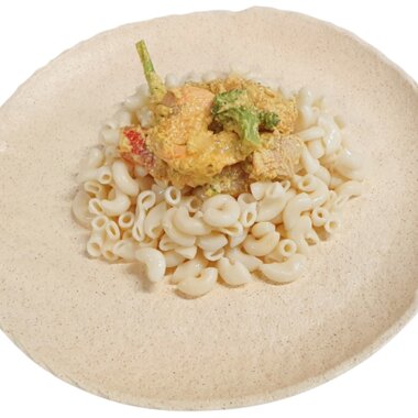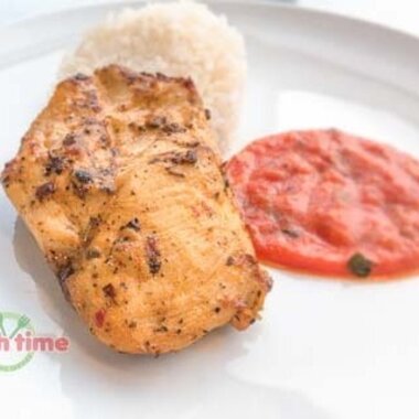 Куриная отбивная с помидорами и болгарским перцем; с макаронами (1 шт)