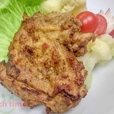 Стейк-гриль куриный, маринованный в базиликовым соусе; с картофелем-беби 100/150 (1 шт)