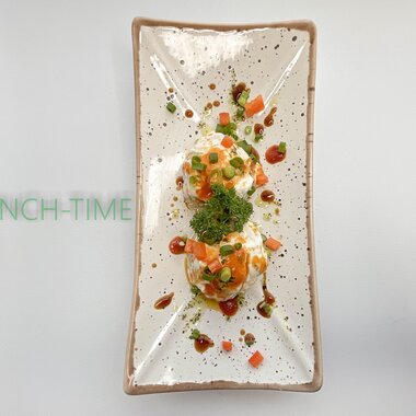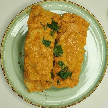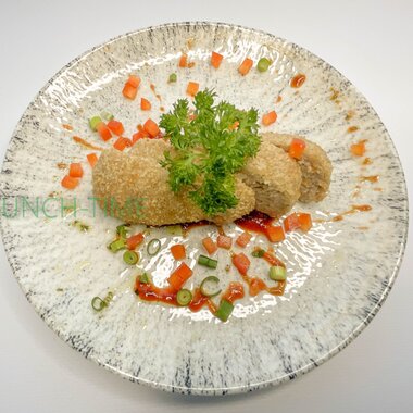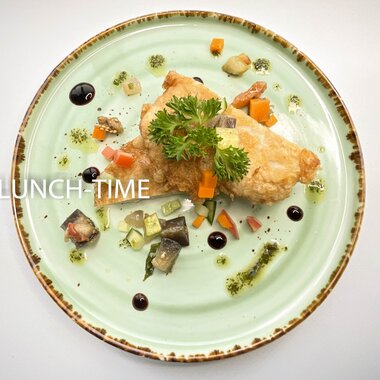 Конвертик с лососем и сыром сулугуни в тесте фило, с овощами 200/40 (1 шт)
