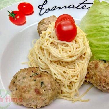 Спагетти с мясными шариками со шпинатом и соусом (1 шт)