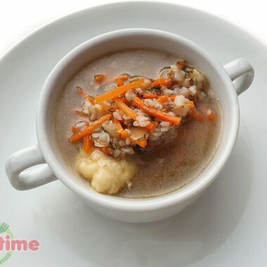 Суп гречневый порция-мини на курином бульоне с картофельными галушками (1 шт)