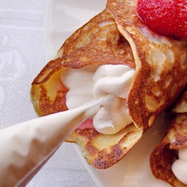 Блинчики с фруктами и взбитыми сливками (1 шт)
