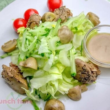 Салат грибной премиум с куриной печенью и медово-горчичной заправкой (1 шт)