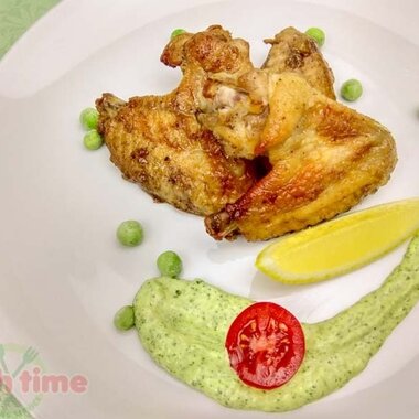 Крылышки куриные гриль с зелёным чесночно-лимонным соусом (1 шт)