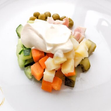 Салат с куриными потрошками и картофелем; с отдельн. заправкой (1 шт)