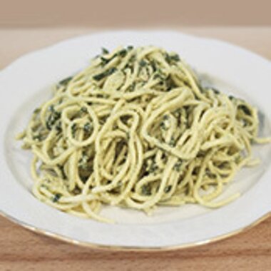 Спагетти альденте со шпинатом и яйцом, со сливочным соусом (1 шт)