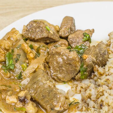 Рагу из перловой крупы с луком и грибами (1 шт)