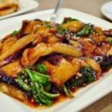 Баклажаны с курицей по-китайски премиум с рисом (1 шт)