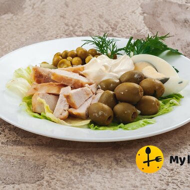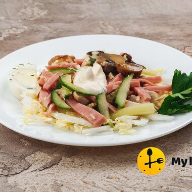 Салат с курицей, ветчиной и сыром (120 г)