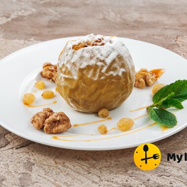 Яблоко, запеченное с карамелью, изюмом и орехами (150 г)