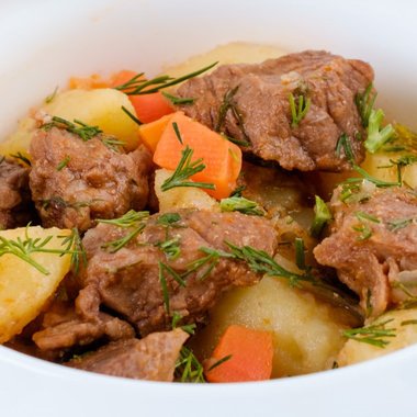 Мясо по-строгановски с картофельным пюре (100/150 г)