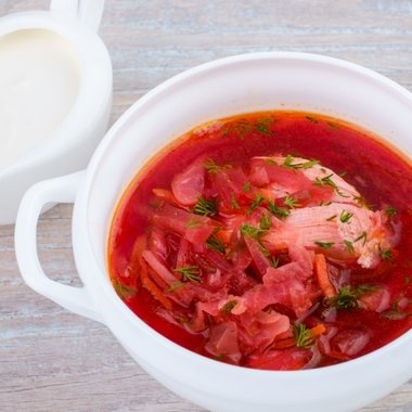 Борщ сибирский с курицей и сметаной (250/20 г)