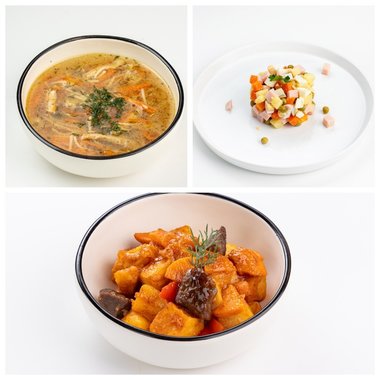 Вареники с картофелем и грибами со сметаной (230/30 г)