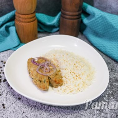 Люля-кебаб из курицы с луком и отварным рисом (300 г)