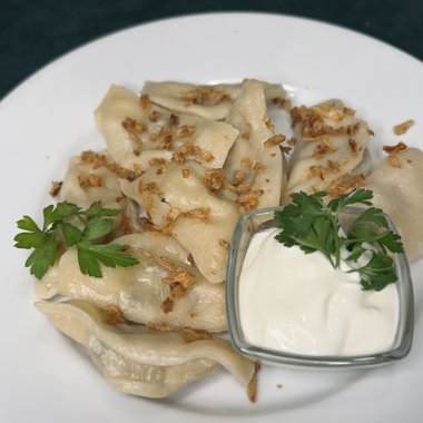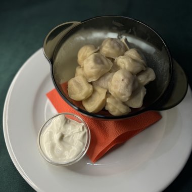 Вареники с картошкой, грибами и сметаной