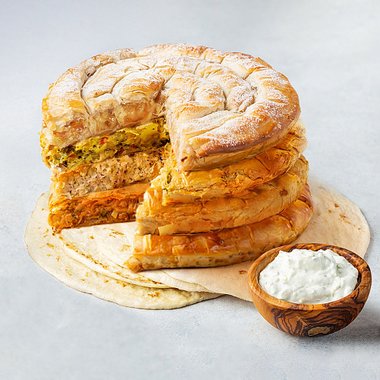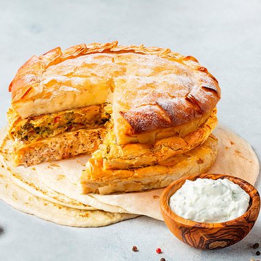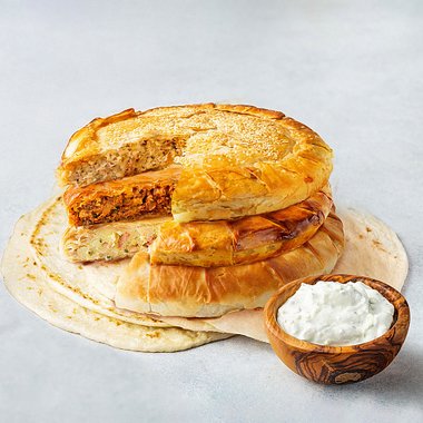 Пататопита ме Манитарья (Пирог с картошкой и грибами)