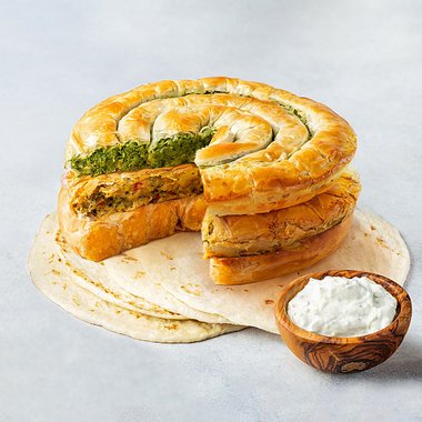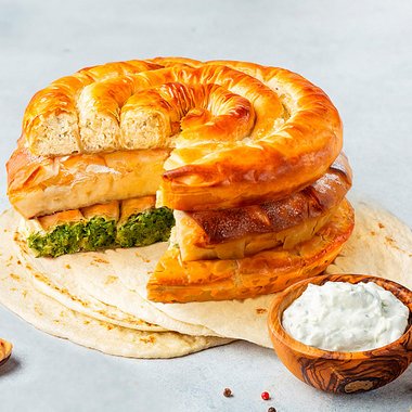 Псаропита (Пирог с красной рыбой и шпинатом)