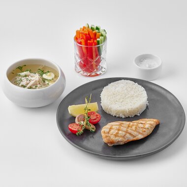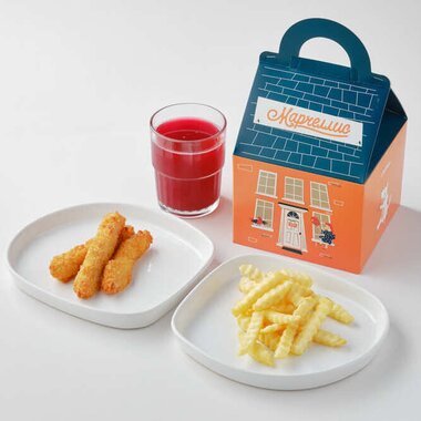Стрипсы куриные с картофелем фри и соусом на выбор