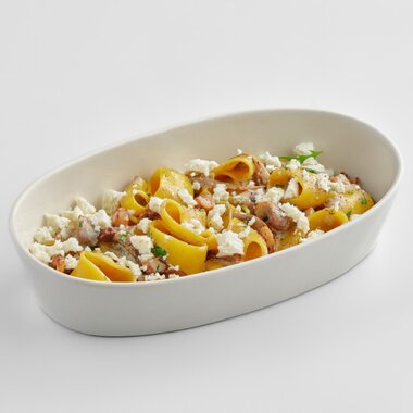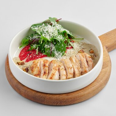 Пенне с куриными фрикадельками и сырно-сливочным соусом
