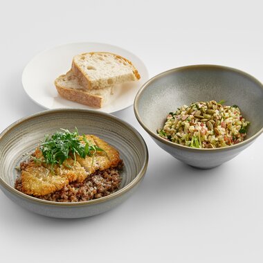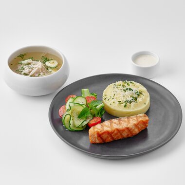 Котлеты из куриного бедра с картофельным пюре и дзадзики
