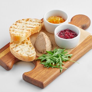 Паштет из куриной печени с луковым конфитюром и вареньем