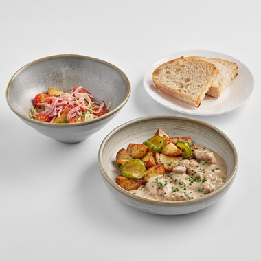 Котлеты из куриного бедра с картофельным пюре и дзадзики