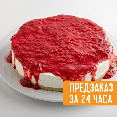 Целый Домашний сырный торт с малиновым соусом
