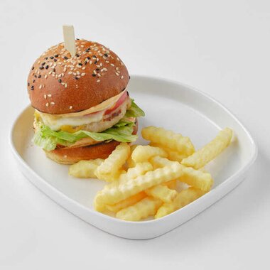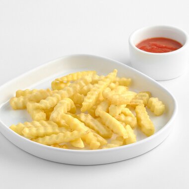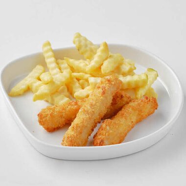 Стрипсы куриные с картофелем фри и соусом на выбор