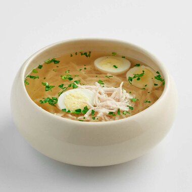 Куриный бульон с перепелиным яйцом
