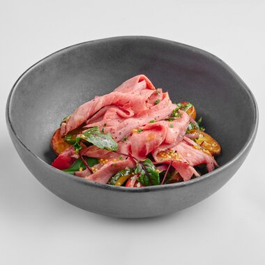 Пряный томатный суп с телячьими щечками