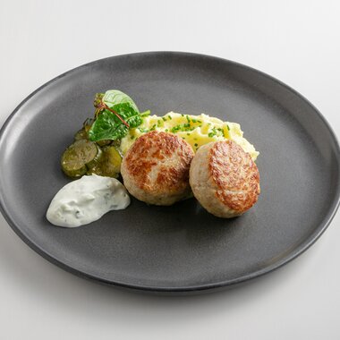 Котлеты из куриного бедра с картофельным пюре и дзадзики