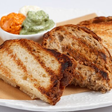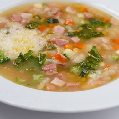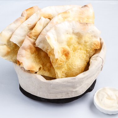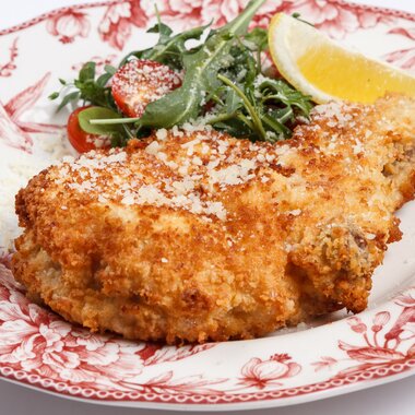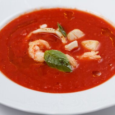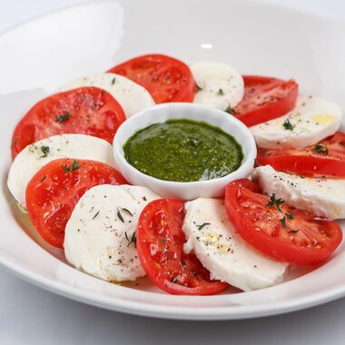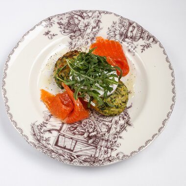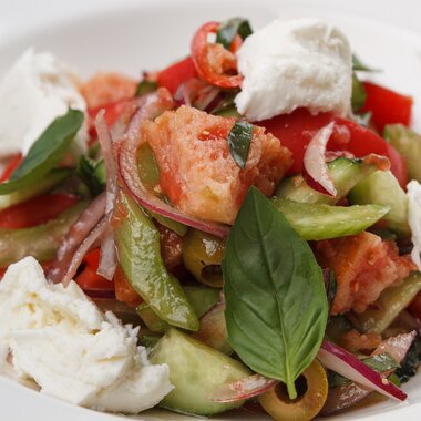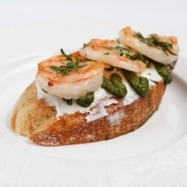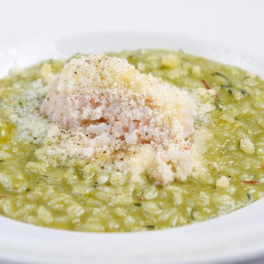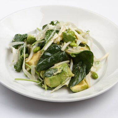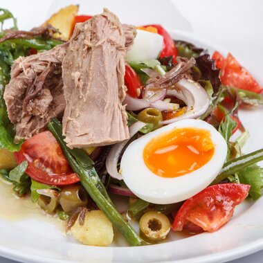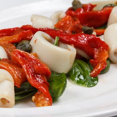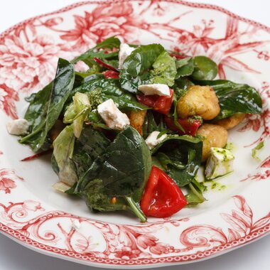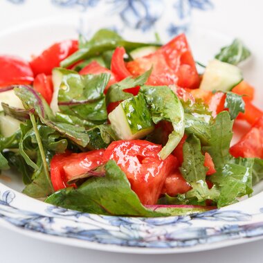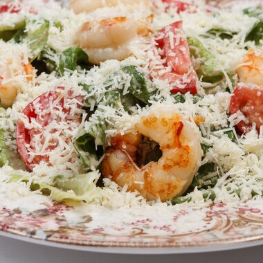 Зеленый салат с креветками под соусом тоннато-пармезан