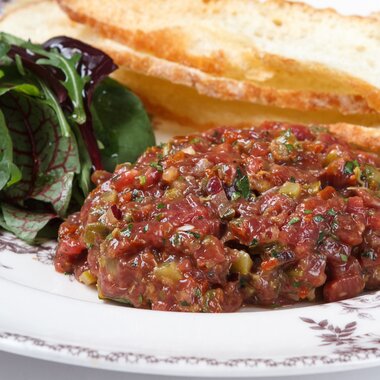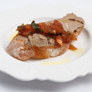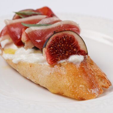Чикетти с уткой магре, страчателлой, эстрагоном и инжиром