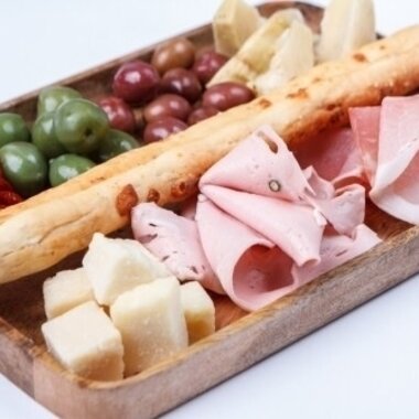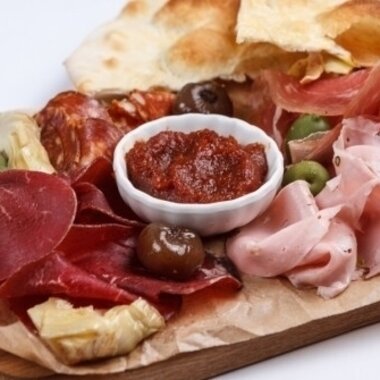 Итальянская закуска: колбаса, сыры, оливки, артишоки