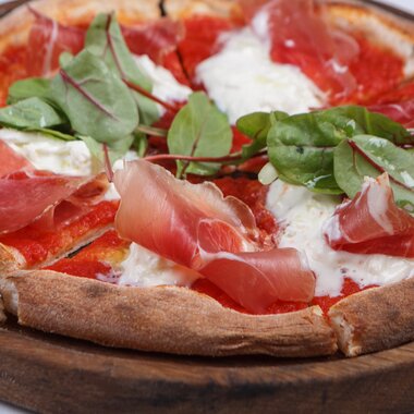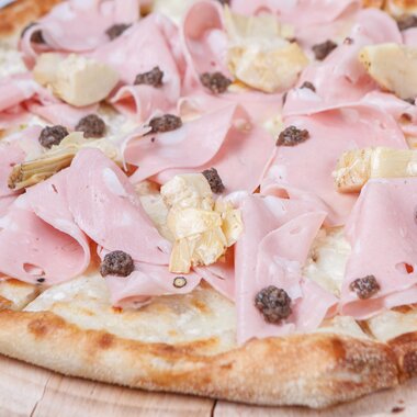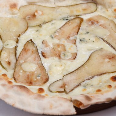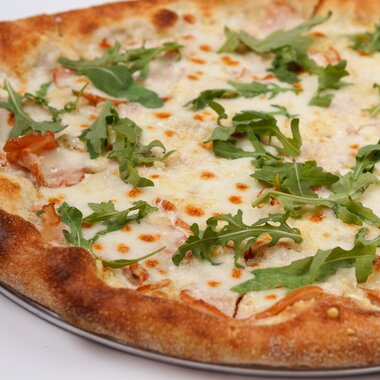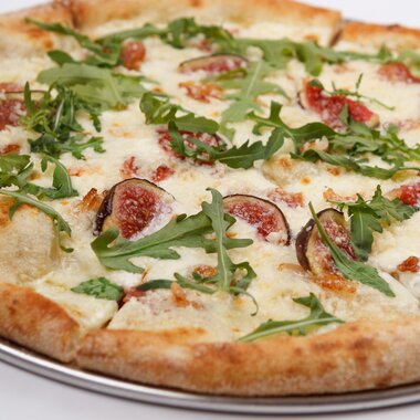 Пицца с беконом, моцареллой, пекорино и инжиром