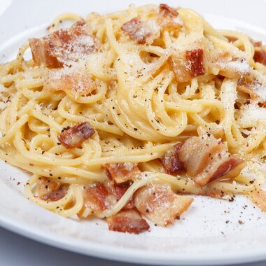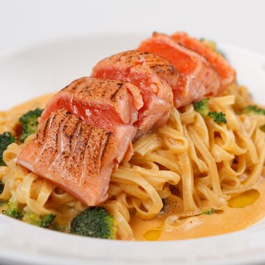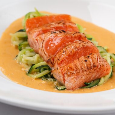 Спагетти из цуккини с лососем и легким сливочным соусом