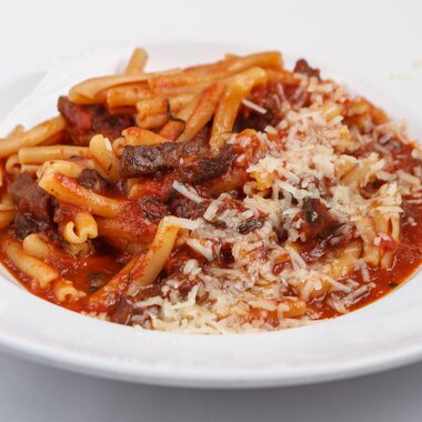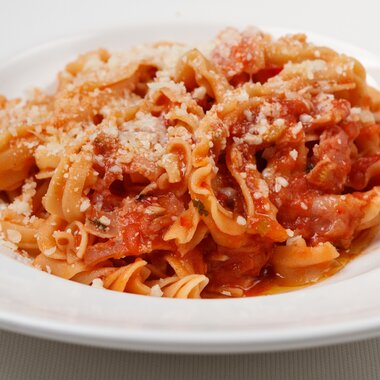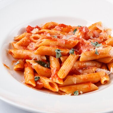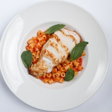 Запечённая куриная грудка с пастой тубетти с томатами и шпинатом
