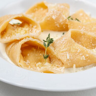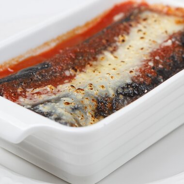 Черные каннеллони с моцареллой, пармой и рикоттой
