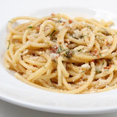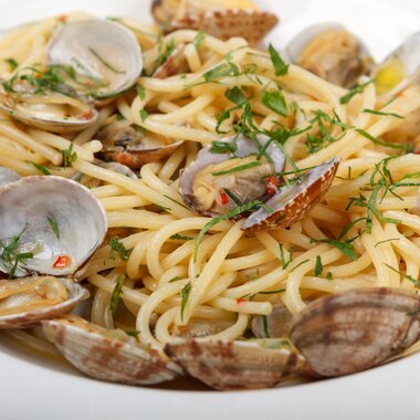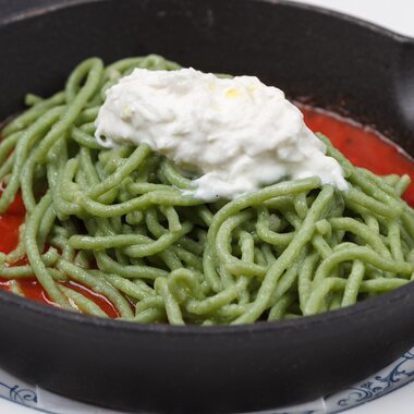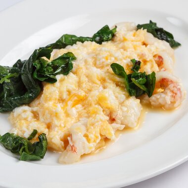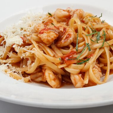 Фетучине с креветкой и шпинатом в сливочном соусе