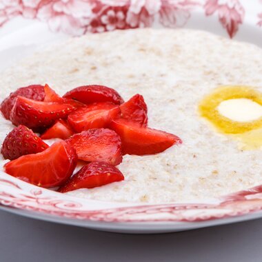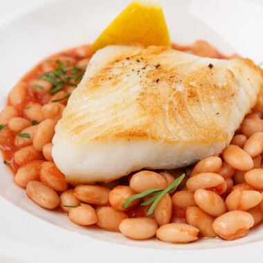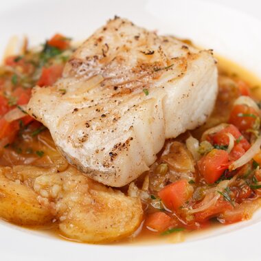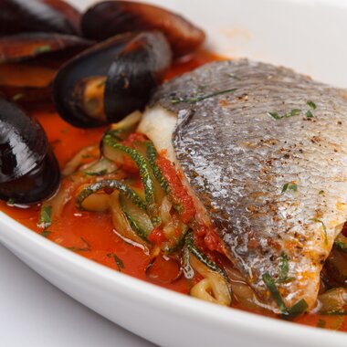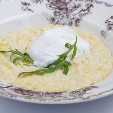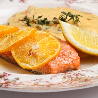 Форель, запеченная с цитрусом, и полента с вялеными томатами