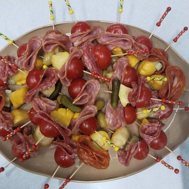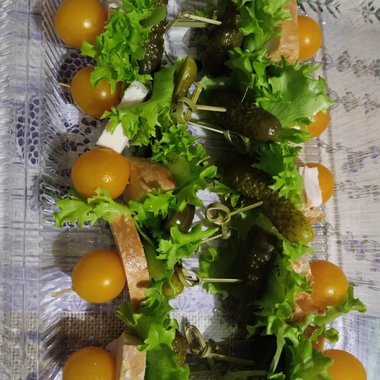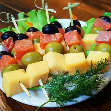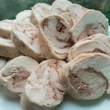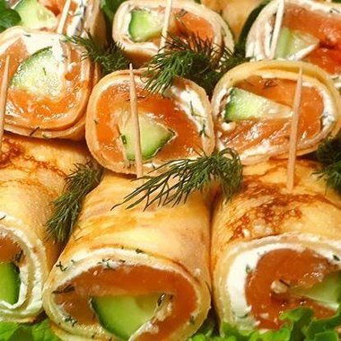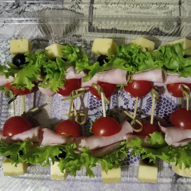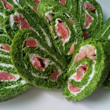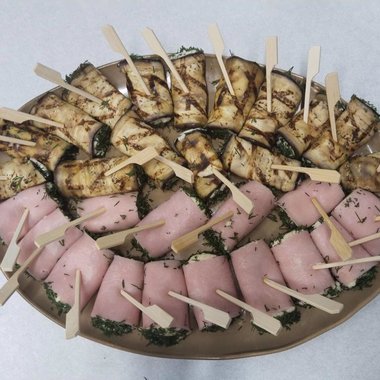 Ассорти рулетиков из ветчины индейки с сыром и баклажан с сыром