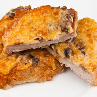 Грудка куриная под сыром и шампиньонами с картофельным пюре 100+170 г