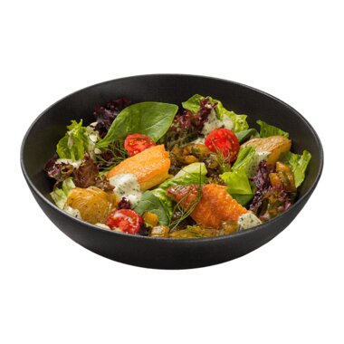 Салат с копченым палтусом и карамельными огурцами