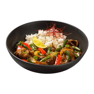 Говядина в соусе из черных бобов