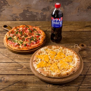 Комбо пиццы №2 Evervess Cola и две пиццы: Мясная и 4 сыра