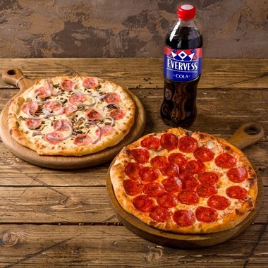 Комбо пиццы №1 Evervess Cola и пиццы: Пеперони и Прошутто фунги