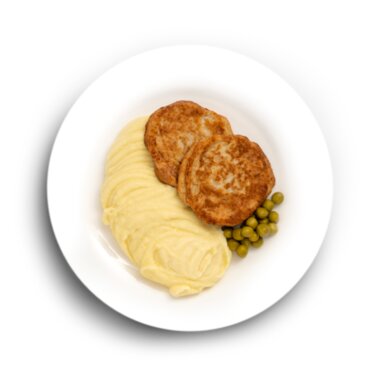 Оладьи из цыпленка с зеленью и картофельным пюре