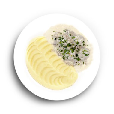 Фрикадельки куриные в грибном соусе с картофельным пюре