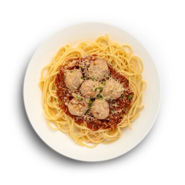 Спагетти с польпетте из цыпленка в соусе Арабьятта