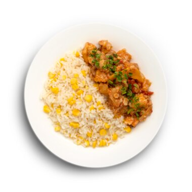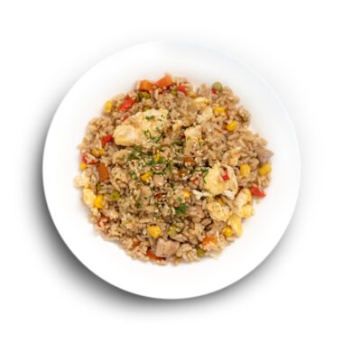 Жареный рис по-сингапурски с цыпленком